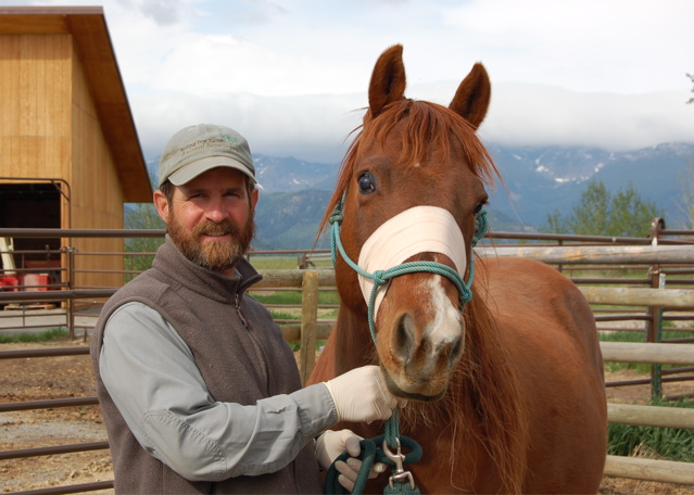 Our equine vet Erin knows I think Lena is the prettiest horse in the universe, so she handles me accordingly — which usually means whenever we have a "Lena issue" she becomes Erin the shrink treating the neurotic client and not just Dr. Erin Taylor, DVM, MS, DACVS (she's a board-certified veterinary surgeon, too).  After I explained what happened and what the injury looked like, Erin peppered me with questions about the flap of skin, which way it's pointed, the size of the cut, etc., and then laid out what our treatment options were.  But, she assured me, "It will heal fine.  The bone is always very close to the surface in that part of the face.  These facial wounds usually look worse than they are and heal quickly."