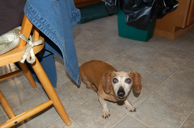 One of the things I find powerless to resist in life is this face, staring at me intently while I try and enjoy a meal. It doesn't matter that he has already been fed. No, sir. He looks up at me from the floor with his adorable bug-eyes, beseeching me for a morsel from my plate. I call him Bugsy when he does this, though you know him as Bailey. The photo is the view from my dining chair. (If you click on it for a larger version, you'll get an even better idea of what I have to endure.)
