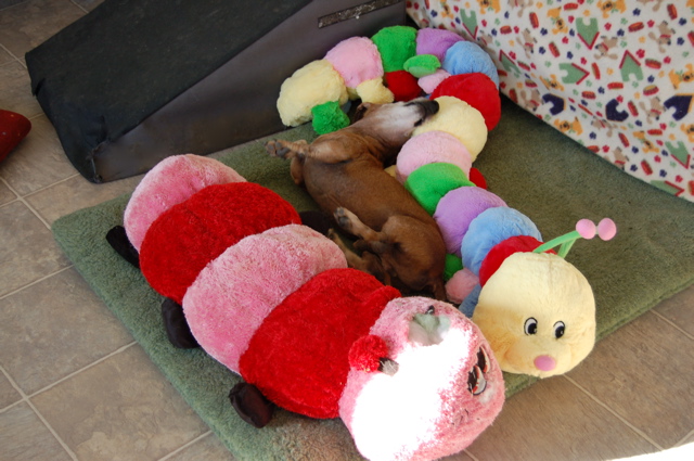 OK, now Frankie wants a Mr. Caterpillar– this is such a cute picture. I just will never get tired of all the great doxie pics you get!!