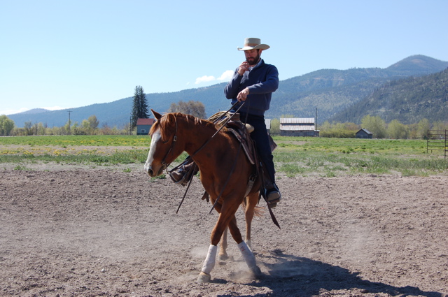 Alayne drove into Missoula on Thursday to pick up our blind Quarter Horse, Cash, who has been with horse trainer Will Balis for the past few months. Since Alayne is the rider in the family, not me, she also needed to learn from Will how he had trained Cash so she would know what cues he would respond to. That's Alayne riding Cash in the photo above.
