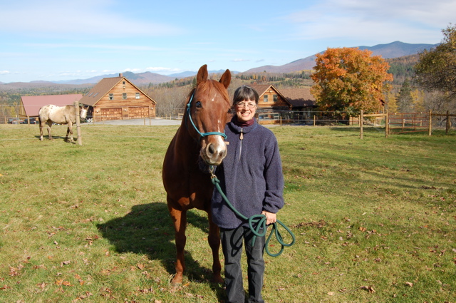 I've been working on the winter issue of our print newsletter this week and the last photo we needed was, of course, the one with Alayne and me with one of our animals for the "ranch letter."  We hadn't done a horse in a while, so we decided it was time to feature our beautiful blind mare Lena again.  This meant there were plenty of outtakes — as usual!