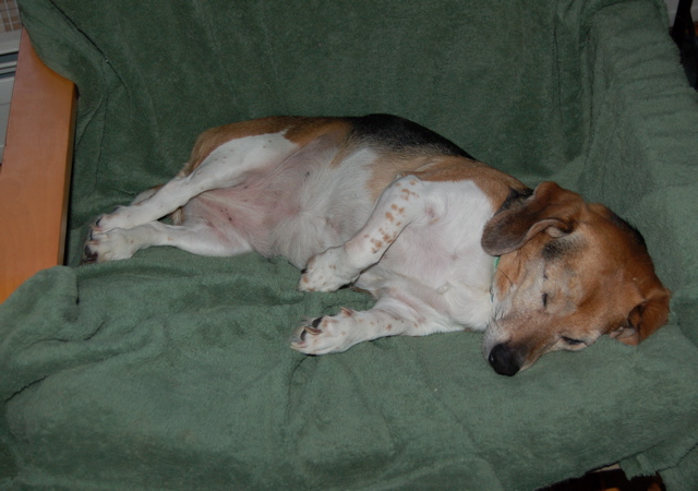 I'm going to take a blog break for the holidays and will resume posting the first week in January. In the meantime, I thought I would leave you with these images for the Christmas season. I took these two photos of blind Goldie and blind Widget a few minutes ago, sleeping in the chairs downstairs in the living room. "'Twas the night before …" Well, okay, it was two nights before Christmas, but who's counting?