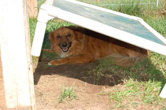 Well, I’ve got to give it to Soba for her ingenuity! She wanted some shade and she sure figured out how to get it. And that smile on her face just says it all!
