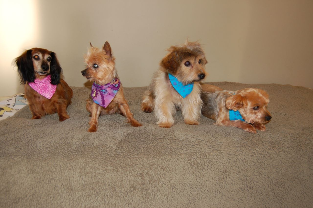 Our wonderful groomer, Lori Fillion of Littleton, was here yesterday to spiff up a number of the dogs. It turned out to be easier to groom four blind dogs than to get all of them to look at the camera at the same time. (Although to be fair to the dogs, sometimes I've had a harder time getting four people to all look at the camera at the same time!) In the shot above, that's Sophie, Penny, Fuzzy and Clyde.
