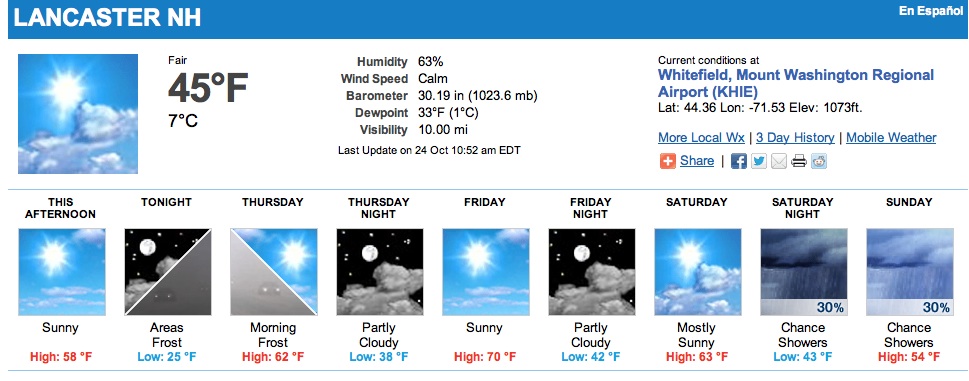 I, too, check the weather (http://www.wunderground.com) for Cambridge, MA, Ovando, MT, and Lancaster, NH. It may be cold in NH, but it’s not THAT cold. Good move.