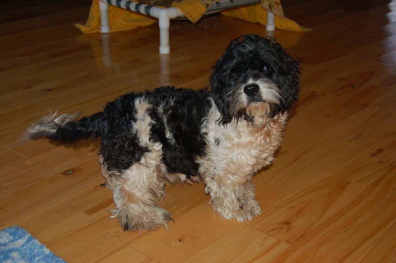 Lisa wrote that she had planned to get him groomed but "we received some very sick pups and I am running a puppy ICU around the clock. I am very sorry." No problem! Our groomer, Lori Fillon, is coming out this Friday as scheduled, and Scamp will be her first project.