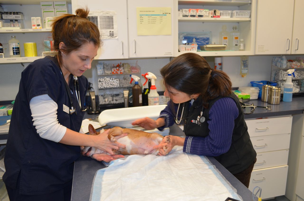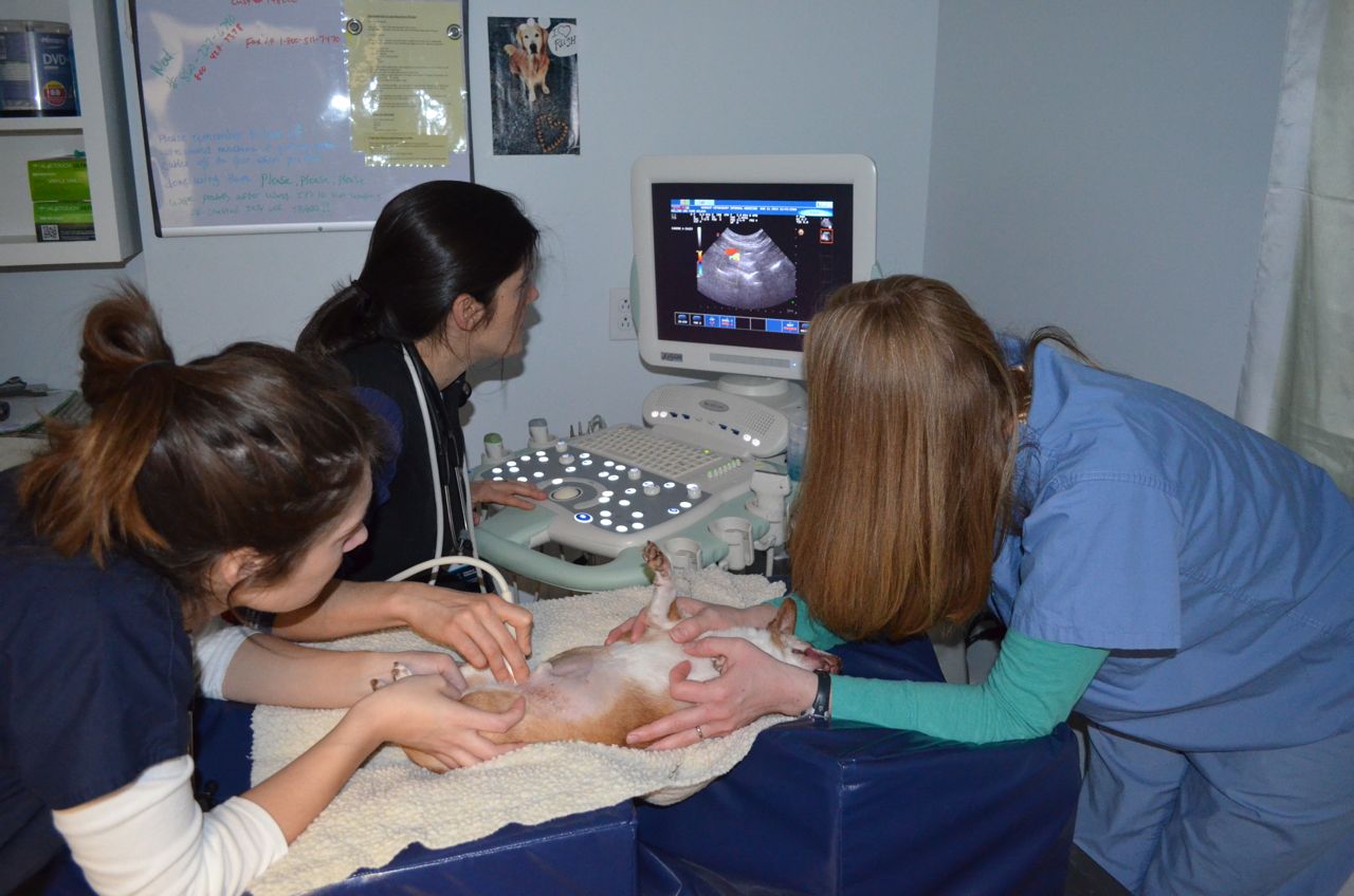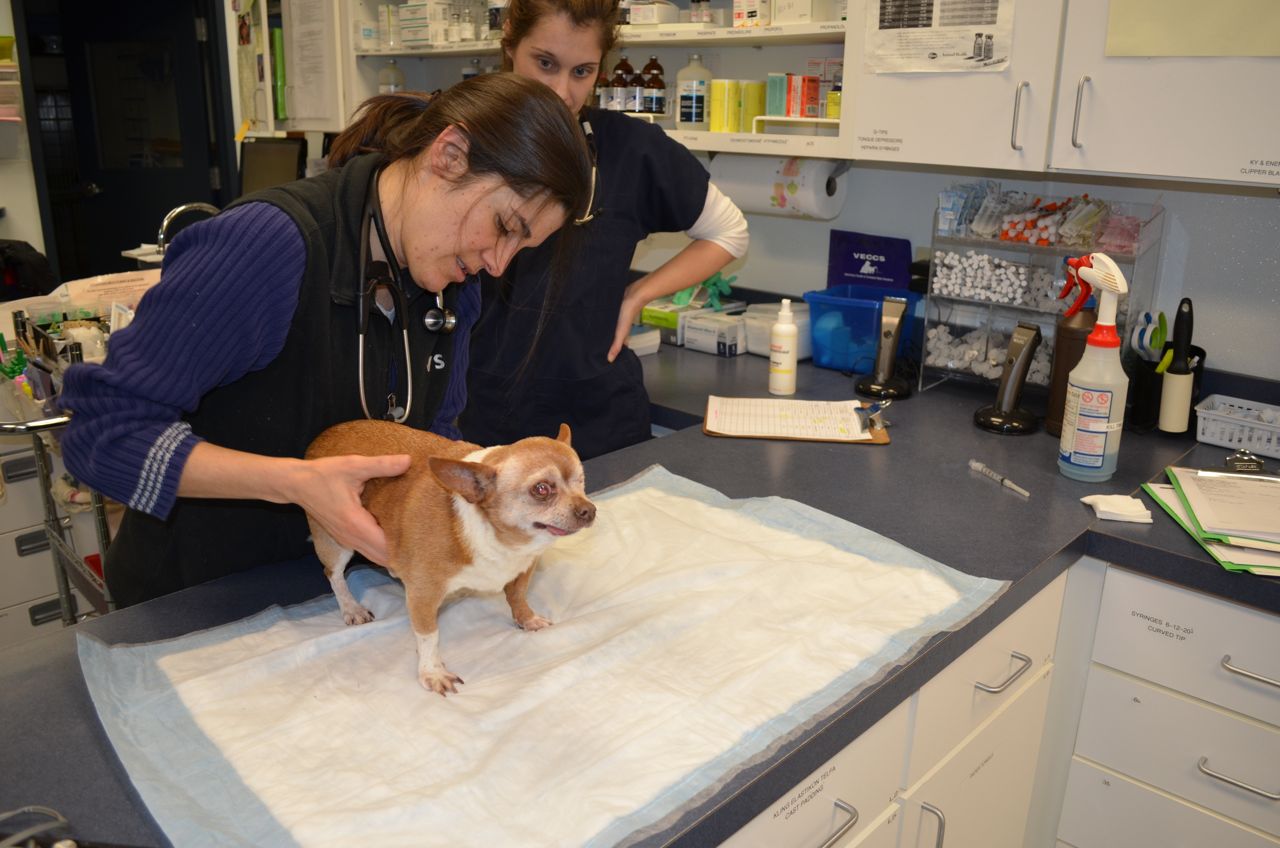 Here's Wilbur during part of the physical with Tanya and Jennifer: