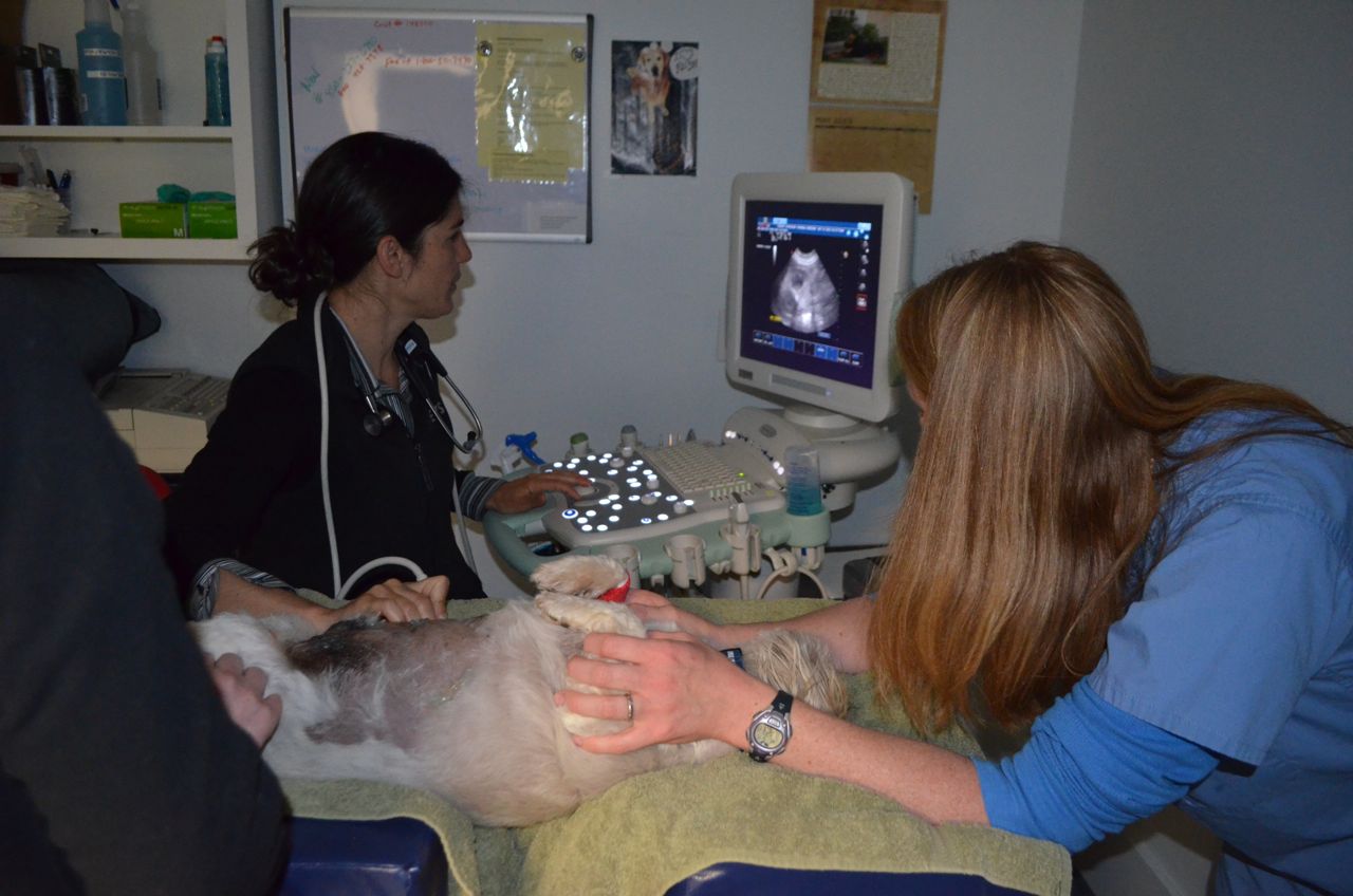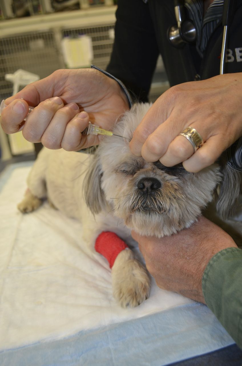 Here's our internal medicine specialist, Dr. Tanya Donovan, holding him for the blood draw: