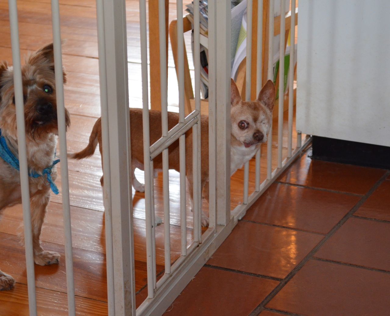 Speaking of barbarians at the gate, we've had Wilbur on a diet for the last few months because … well, because he was getting a bit chunky. He protested the new diet, of course, but recently discovered one unintended (and potentially exciting) benefit — his new, slimmer body now can almost fit through the bars of the gate protecting the kitchen and our dining table from the hordes. But as you can see, he's not there yet. Nevertheless, talk about motivation for staying on a diet, eh?