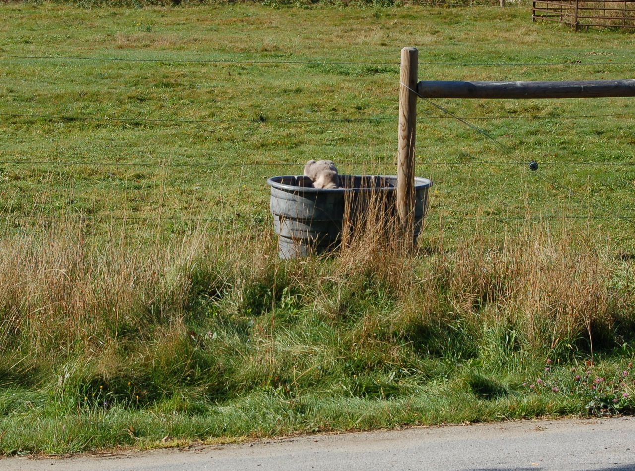 Since then the tanks have been emptied, and next year we'll add some "ladders" made out of metal mesh so he and the others can climb out if they do manage to go overboard.