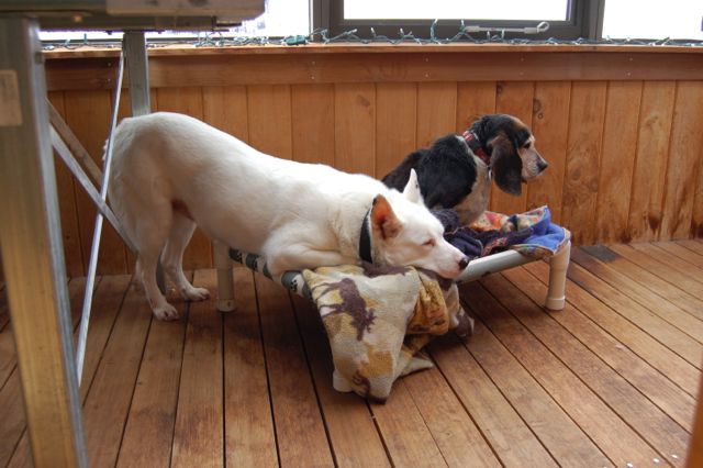 A manure spreader is a noisy, clanging thing with lots of "stuff" flying around, and many horses would not do well pulling this kind of equipment behind them. But Bill and Bob needed only a couple of practice runs to get used to it, so by the time Kate and I were ready to spread manure on Friday, the boys were ready to haul their first loads. These were light ones, more bedding than manure, again to ease them into working after a winter off.
