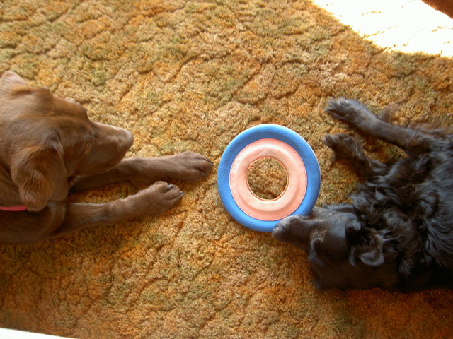 There are times I end up putting her out on the front porch or in the dog wing while we eat, so as not to end up either a) giving away my entire lunch or b) feeling guilty that I'm not giving away my entire lunch to the bouncing beggar.