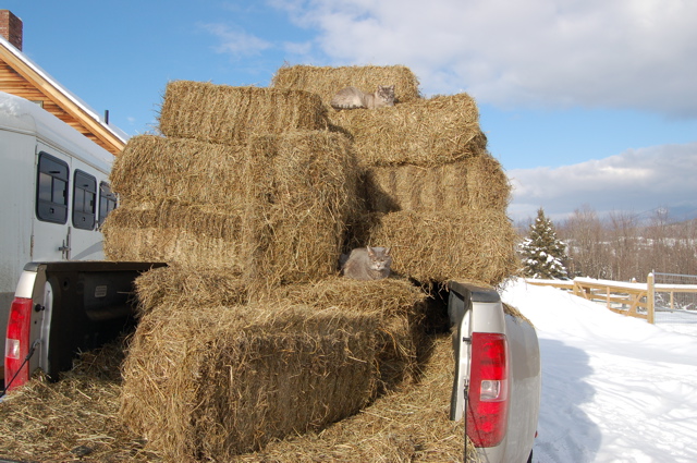 As Kate ran to get the bolt-cutters, Alayne put a halter on Cash and led him out of the pasture and back to his corral. Then she dashed off to find the soft ropes we use for these situations. (We've seen this movie before.) I stood by Lena, trying to figure out the mess of wires, where to start cutting, and then what the "exit strategy" was going to be. The fact that she was facing uphill, against the fence posts, made it more complicated.