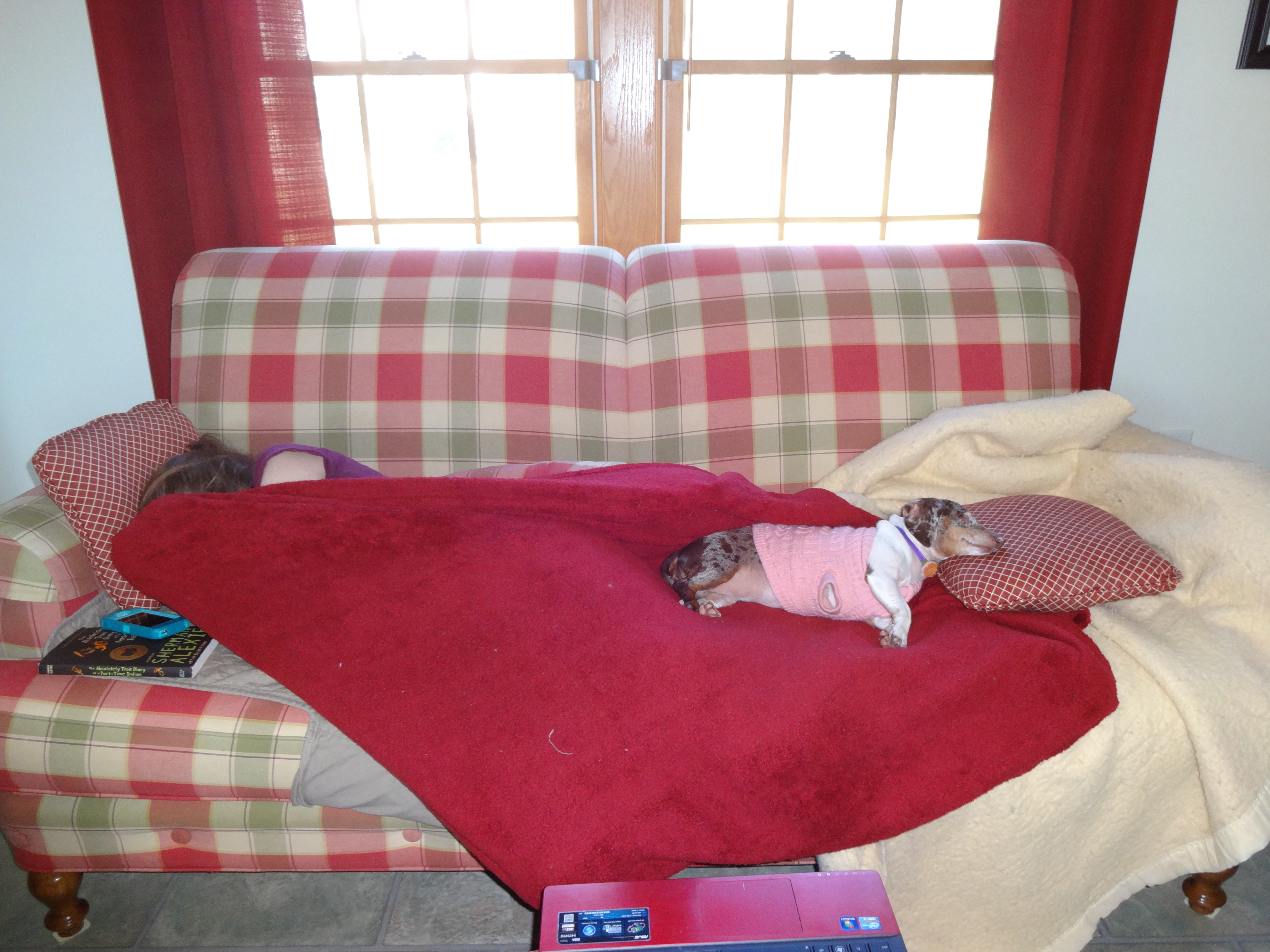 Alayne took that photo of blind Sophie sharing a bed with Widget on January 2nd, the day after we found out Sophie is diabetic. Yes, I spent a good part of New Year's Day at the emergency vet clinic in Littleton, trying to figure out what was going on with her.