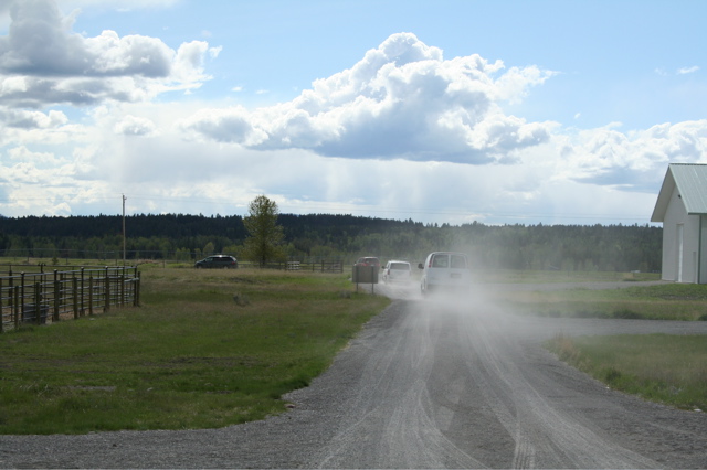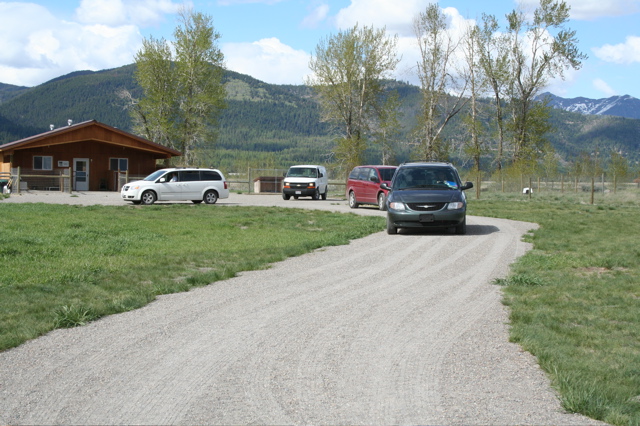 The truck was driven by friends of ours, Hank and Mary Ann K. from Avon, Montana. This was the second load they've delivered. We have another couple from New York, Mike and Laura R., who have been bringing out loads with a pick-up and 24' (7.3 m) flatbed trailer. Hank's semi flatbed is 48' (14.6 m) long. It took over four hours to unload that thing!