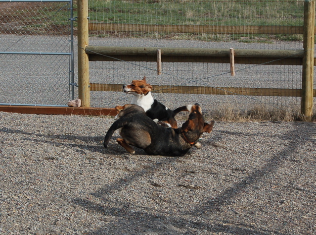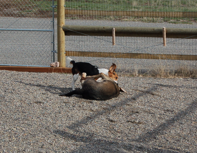 After she'd get done rolling, she'd push herself across the grass, sliding and sliding. Then she'd roll some more. I think she likes it here.