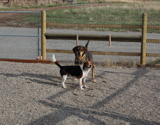 My job is to have everything ready to receive the animals when they start arriving in a few days. I thought all the dog fencing was done, and thus was surprised to pull up Friday evening and find that, well, the fencing was done but not a single gate had been hung yet … so in effect, I had no usable dog yards. I scrambled to put together some makeshift gates so I could turn my seven dogs out into the yards. The fence company will be finishing up in the next couple of days.