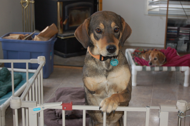 Barb reports that "Gabe is 'mapping' the house and cuddling at night with us. He loves to find you on the floor and curl right up to you."