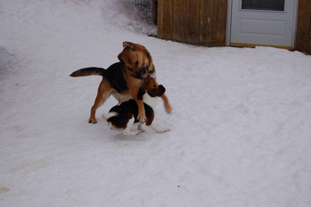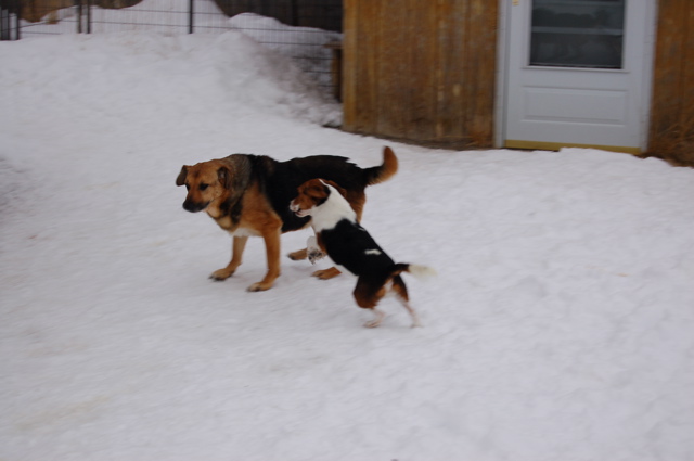 But, like all of our animals who were born with disabilities, these two don't know anything different … they don't know that the world isn't dark or that they are at any kind of a disadvantage. So they are as outgoing and inquisitive and fearless as any dog. They have spent the weekend exploring every inch of the house, and quite a bit of time wandering the yard, too. Stevie really zooms — he is incredibly fast, and loves getting around: