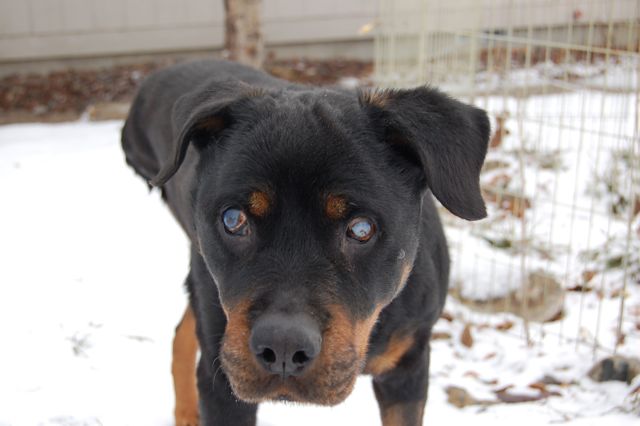 This is blind Mitch, a handsome Husky who came to us a year ago. You haven't heard much about him since then because, to be quite honest, for a while there we weren't sure what we were going to do with him. He arrived with an alpha personality and a dominant "don't mess with me" attitude, and as long as he got his way, he was sweet and playful. But when he didn't get his way, we could have a problem on our hands.