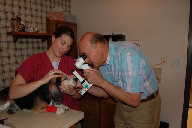 Here's a photo of Dr. Yakeley and his vet tech Dawn D. doing that exam:
