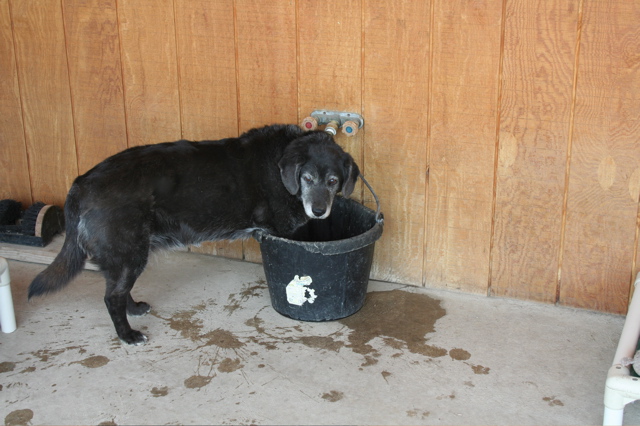 Then she told me what I needed to do to dress the wound, what to give Lena for antibiotics and inflammation, and to call her in the morning with an update. Alayne and I headed off to round up the various medical supplies. Alayne took the photo above of me with my patient after I got Lena's wound bandaged up.